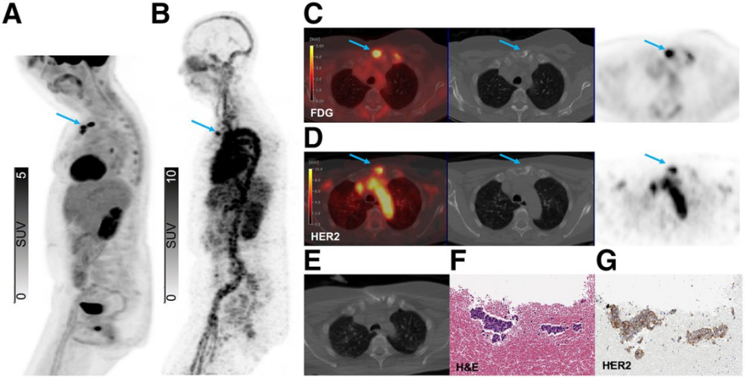 图2. 一例患者HER2 PET成像显示的HER2阳性胸骨病灶