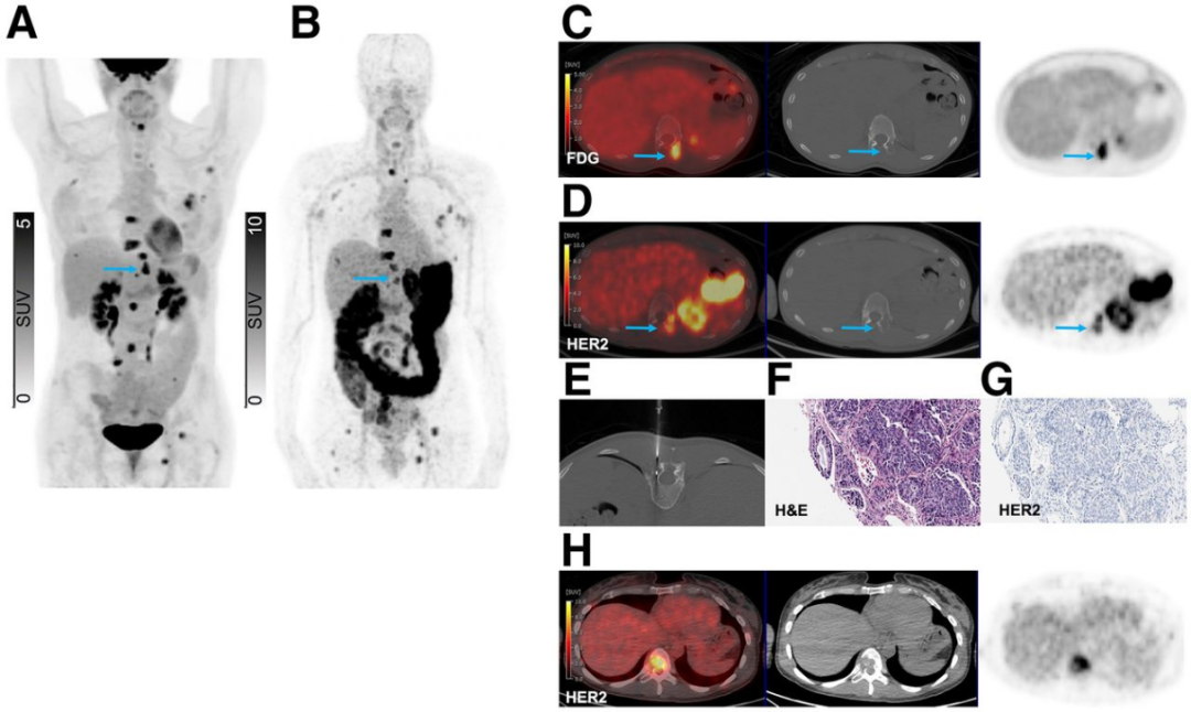 随着HER2低表达(HER2-low)被确立为具有临床意义的独立治疗亚型,传统的HER2二元分类模式正面临挑战,HER2低表达肿瘤的精准识别对临床治疗策略的制定愈发重要。然而,目前临床通用的免疫组化(IHC)检测依赖于单一部位活检,不仅存在观察者间变异性,更难以全面捕捉转移性疾病中普遍存在的肿瘤时空异质性。近年来,新型HER2靶向PET成像技术有望提供一种无创手段来评估全身病灶的HER2表达情况,但该技术往往会出现影像学显示放射性摄取阳性、但病理学判定为HER2阴性的“假阳性”现象。鉴于HER2病理分类标准的更新,一项研究[1]旨在通过回顾性分析配对的HER2 PET影像与肿瘤活检数据,探究上述“假阳性”结果是否实为HER2低表达病灶,从而评估HER2 PET成像在可视化HER2全谱系表达及解决肿瘤异质性评估难题方面的潜在临床价值。
