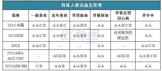 在药物治疗方面,进一步强调降压治疗主要获益来自于降压本身,并且在很大程度上是独立于所选择的药物;进一步确认了五大类降压药物——利尿剂、β受体阻滞剂、CCB、ACEI、ARB,无论是单用还是某种情况下与其他药物联合使用,都适合于高血压的初始和维持治疗;基于特定情况,可优先建议选择某种降压药物,如对改善靶器官损害和危险因素有明显的益处。