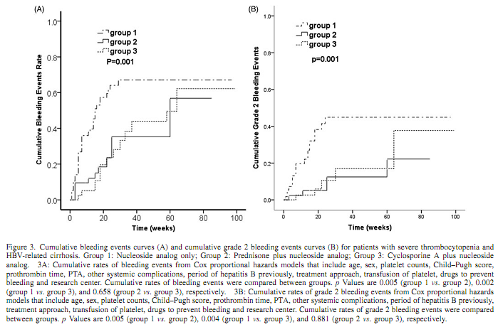 (CsA)联合核苷类似物(NA)治疗乙肝肝硬化所致的重度血小板减少的安全性和有效性。文献阅读:Platelets 2014 Nov 14;:1-8.