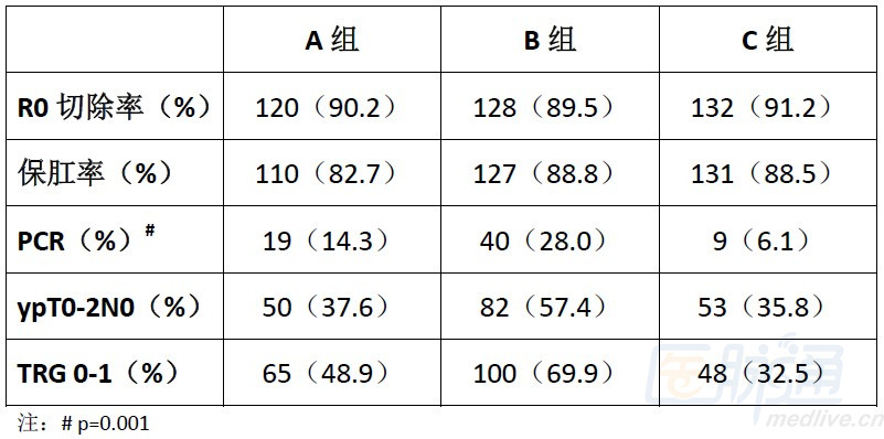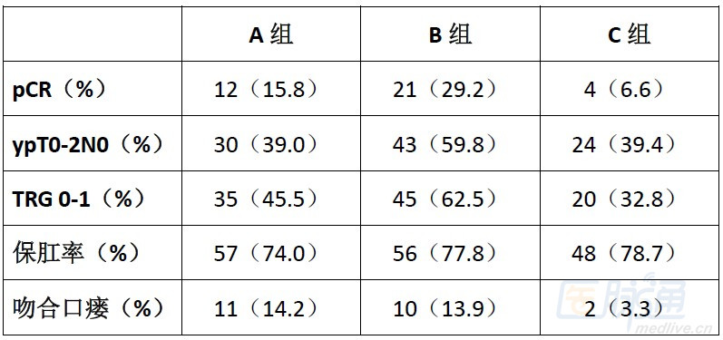 研究的主要终点为3年无病生存率(DFS),样本量估计为每个治疗组165人。次要终点包括病理完全缓解率(pCR),R0切除率,保肛率,局部复发率,总生存,生活质量,毒性,预测性生物标志物。