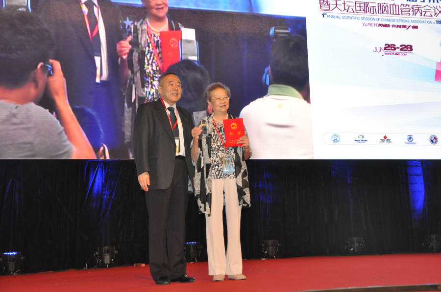 饶明俐教授(右)获得“中国卒中终身成就奖”